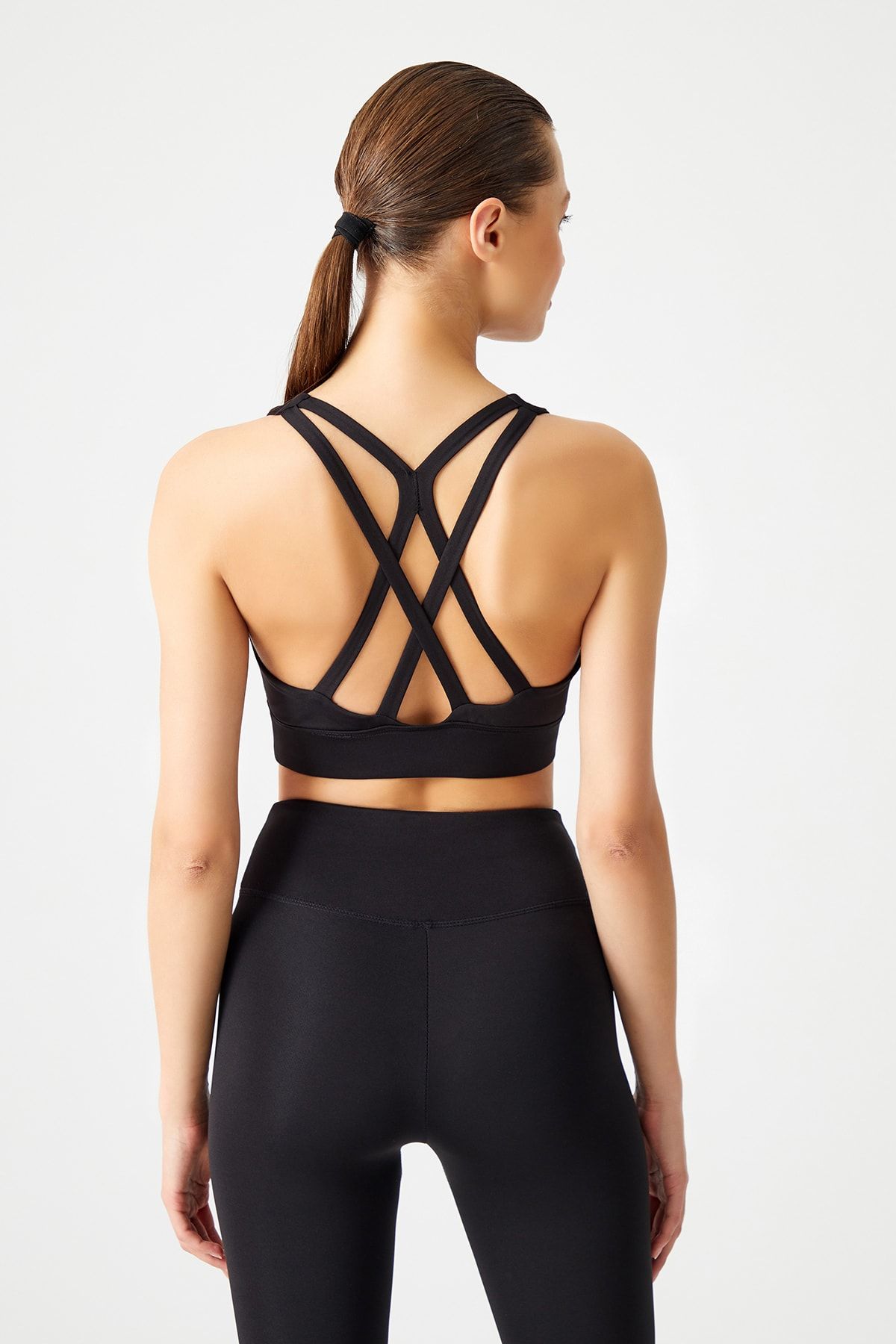 Siyah Destekli Sırt Detaylı Kaplı Spor Sütyeni