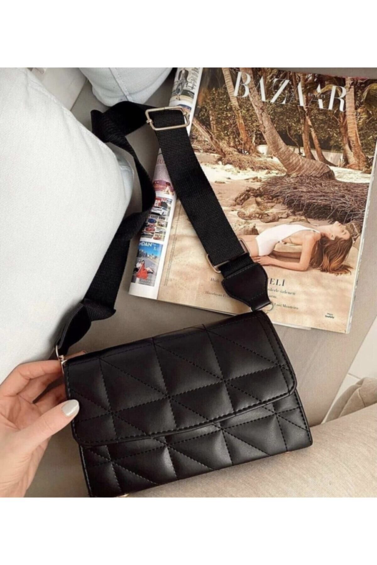 Siyah Kolon Askılı Kapitone Kadın Omuz Çantası