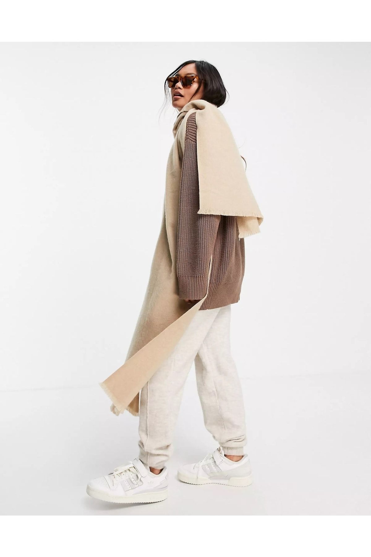 Unisex Düz Bej Kalın Atkı